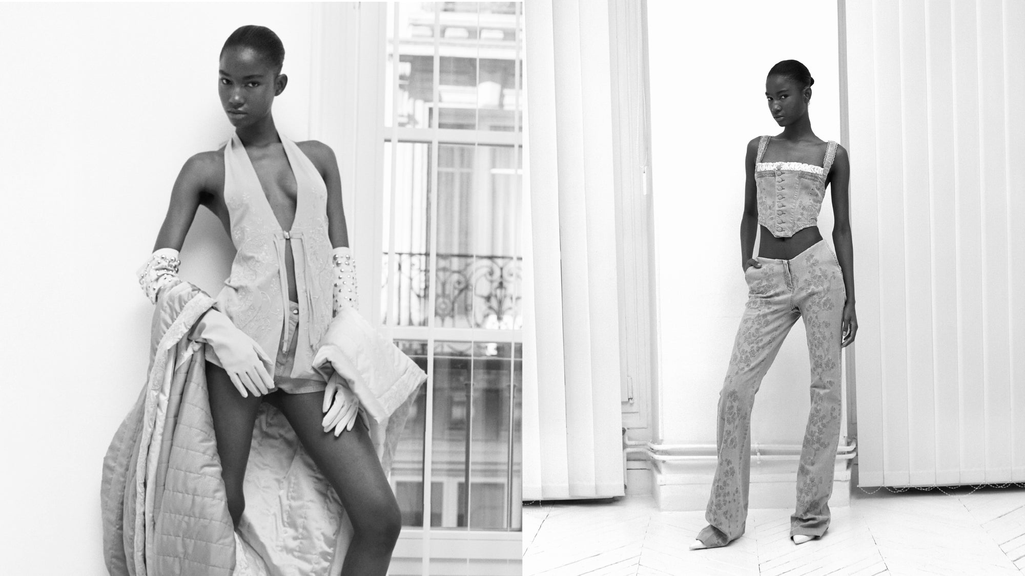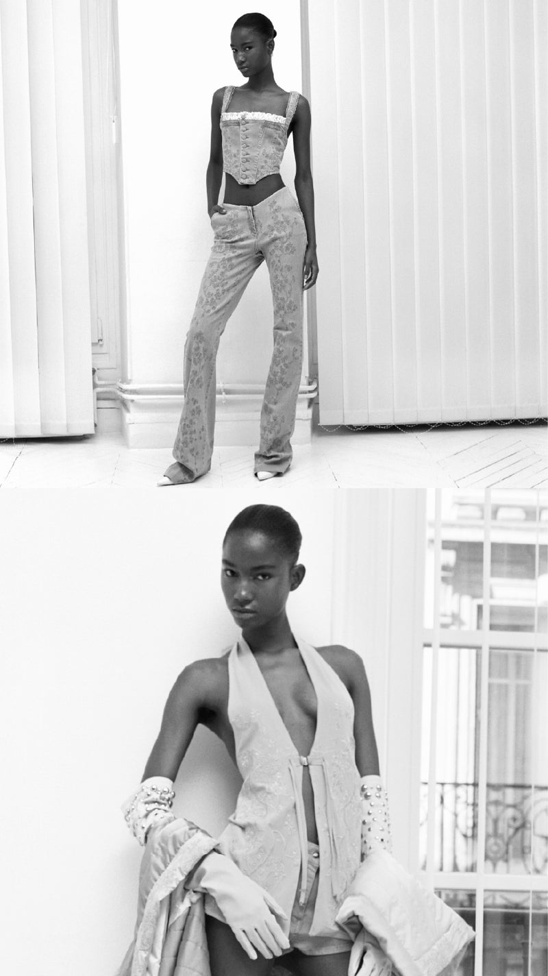 Embroidered Panelled Denim Corset