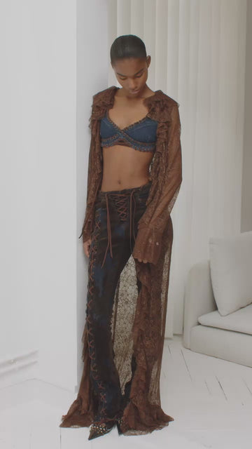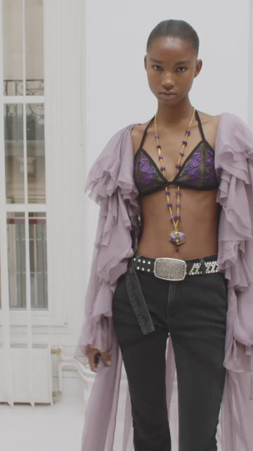 Deep V Neck Shoulder Padded Top With Hooked Needle